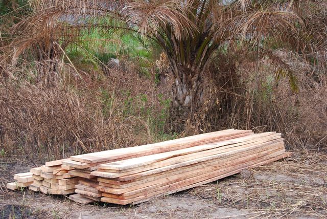 Fundamente erstellt. Eine Mauerkolonne ist dabei, die Hohlblocksteine zu
